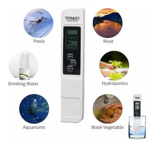 Con este producto puede medir: la producción y el consumo de agua Pura, galvanoplastia líquido, agua de la caldera, el agua del tanque de pescados, piscina de agua de limpieza, los enjuagues fotográficas, agua de pozo, agua de pozo profundo, laboratorio, la acuicultura, procesamiento de alimentos, familia, oficina, la enseñanza física y química, ionización de maquillaje agua, suministro de agua municipal, cuidado médico de viaje, entre otros